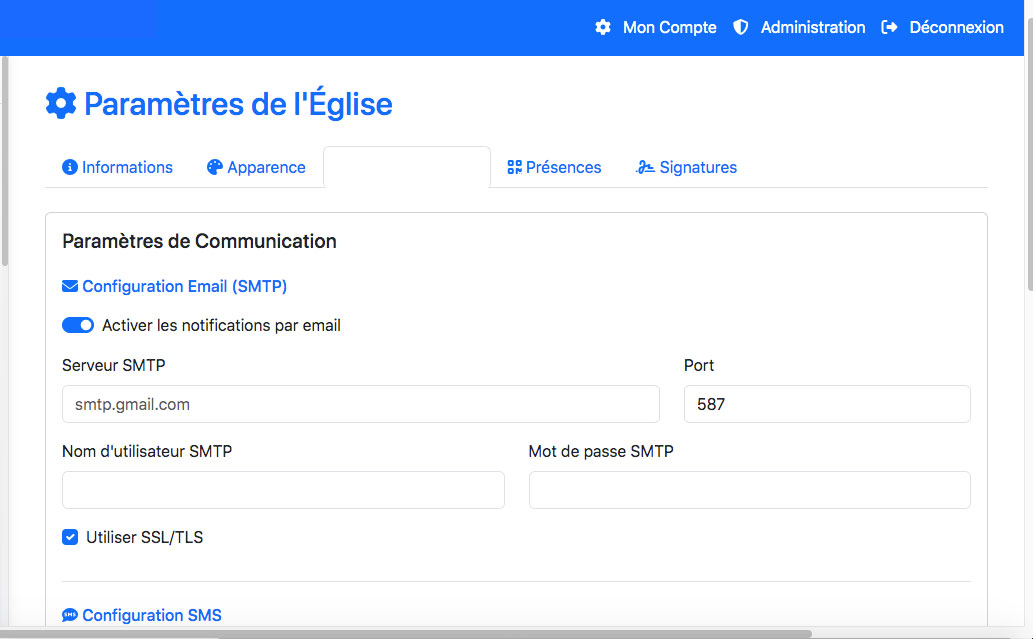 Centralisez toutes les informations administratives et organisationnelles de votre église au même endroit. Gérez le profil complet, le logo, le sous-domaine et tous les paramètres essentiels pour un fonctionnement fluide et structuré.